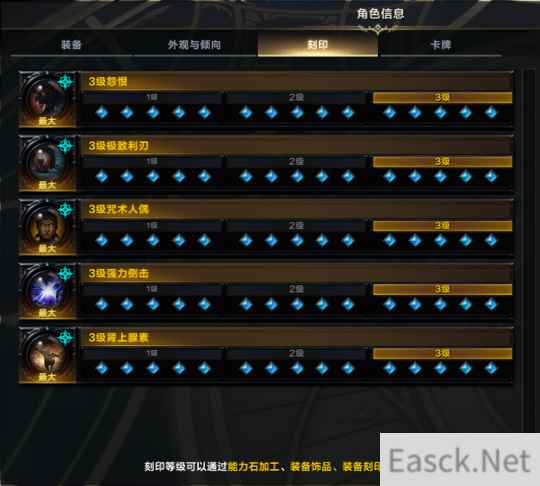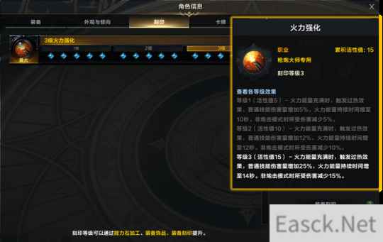 带三级的职业刻印火力强化,走地鸡标配 另外关于玩炮击强化的,这个流派对装备基础属性有一定的要求,专长最少要1300以上才可以,国服一时半会到不了那个版本,所以就不讲了 其他进阶刻印展示