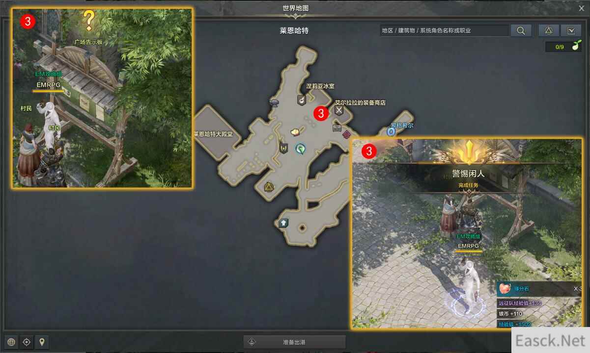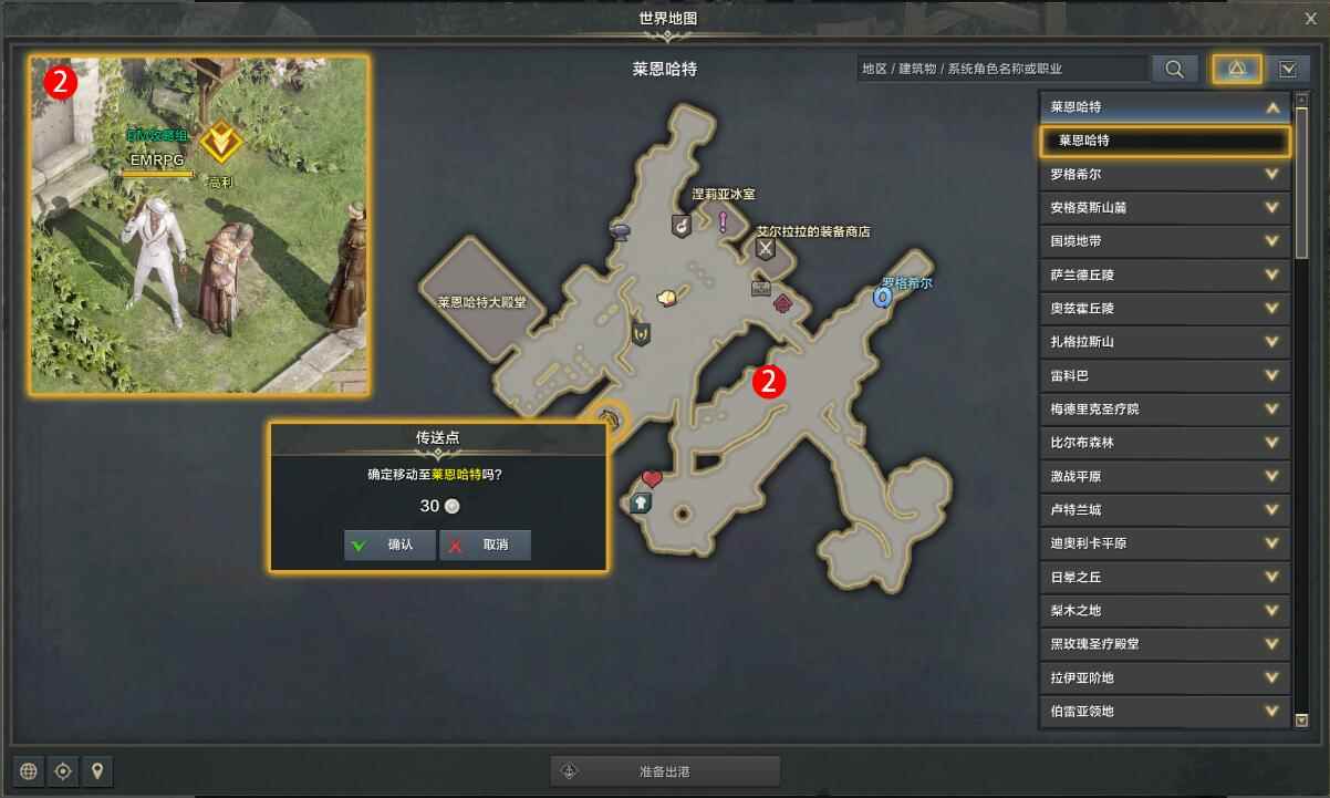 2.M打开地图︰使用世界地图的莱恩哈特传送点传送过去把警告书转交给村长高利。