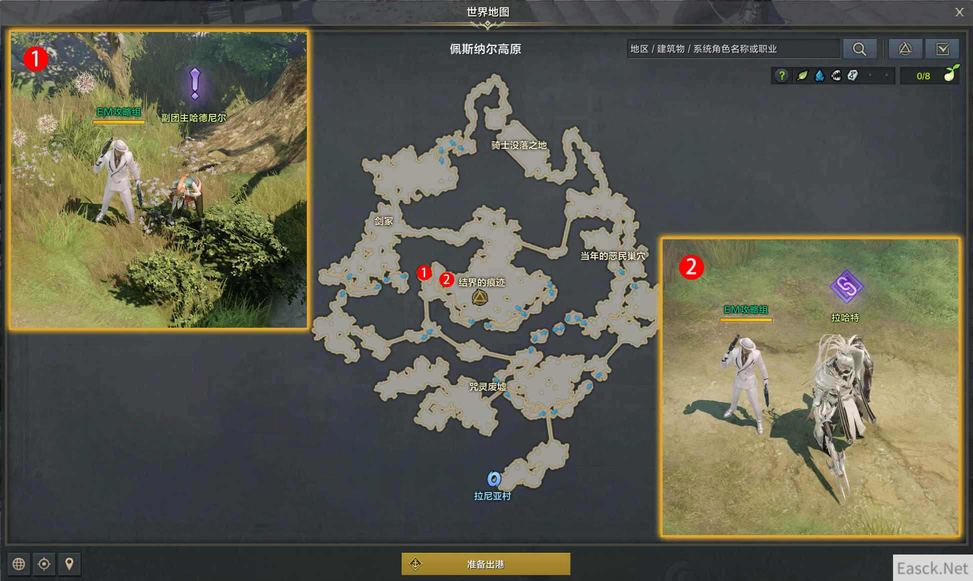 任务详情 1在图片位置接取任务 2前往高原中心地带与拉哈特交谈
