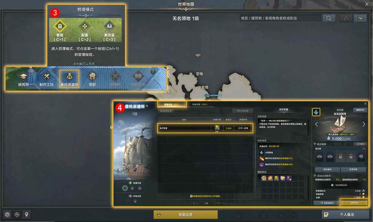 3.Ctrl+1选择画面上方的委托派遣所 4.派遣普通任务