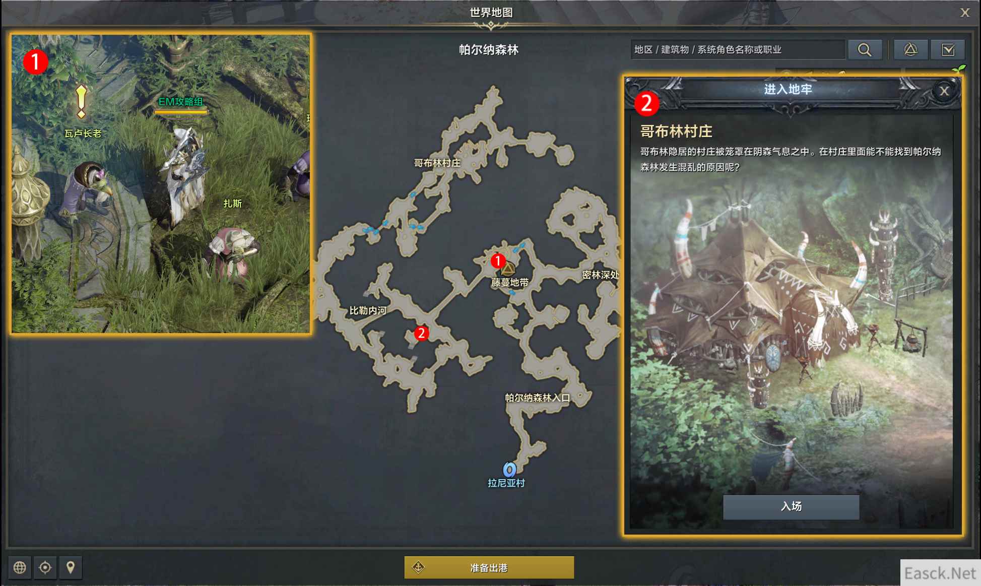 任务详情 1.在图片位置接取任务 2.调查哥布林陷入狂暴的原因 进入剧情副本(陷入癫狂的村庄)