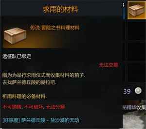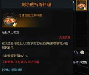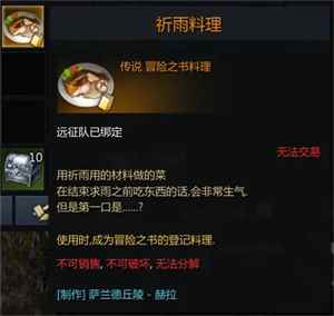 剩下的祈雨料理:去找厨师赫拉完成制作“祈雨料理”,需要准备1700银币,直接背包使用获得“剩下的祈雨料理”;