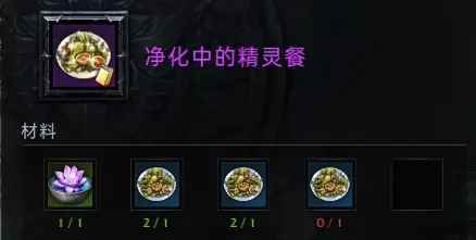 被污染的第2个精灵餐获取方式:在地图“埃尔佐温之荫”击杀任意精英怪掉落; 被污染的第3个精灵餐获取方式:在地图“荒废的泽纳尔”最下面的位置,等待野外BOSS“哈尔玛格顿”,击杀随机掉落; |