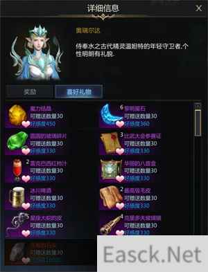 喜欢的礼物:魔力结晶+450,这个道具可以从伯尔尼北部的流浪商人处购买获得