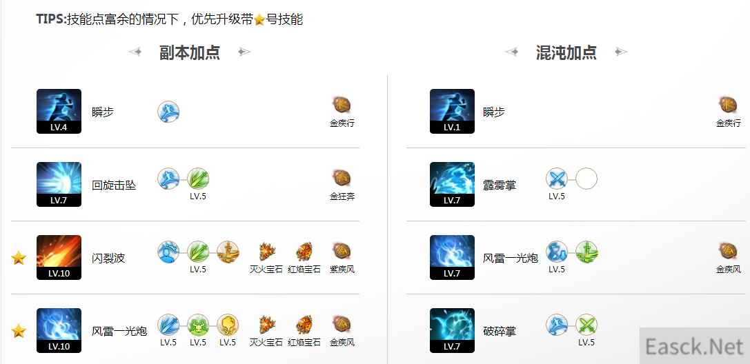 思路解析:关于技能:推荐这一套属于完全体,后续瞬步要点到7技能天赋按照自己习惯点就好,其他10级技能随等级升级即可。关于宝石:伤害宝石越高越好,CD宝石推荐7或10其他等级意义不大。技能循环:瞬步X3-回旋击坠-Z-内功释放-如来神掌-闪热波-幻影一击-乱花击-风雷一光炮。极限情况下可以在一个Z的持续时间内打出两套此循环,第二套循环要将闪裂波放到最后。 1.瞬步增伤与内功释放增伤不叠加。 2.三段瞬步+回旋击坠+Z+内功释放 即可BUFF全开,直接打输出技能。 3.最高伤害觉醒,释放前需要叠满肾上腺素保证触发套装BUFF挂上回旋击坠斗志强化,开启Z释放内功释放然后立刻释放觉醒,可以打出最高伤害 4.开Z的瞬间为霸体可以扛住一些击飞击退技能。 5.X键可以提前结束Z的持续状态,尽快进入恢复状态。 |