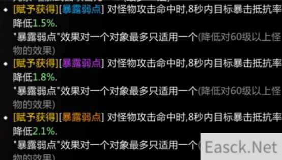 暴露弱点 降低怪物暴击抵抗