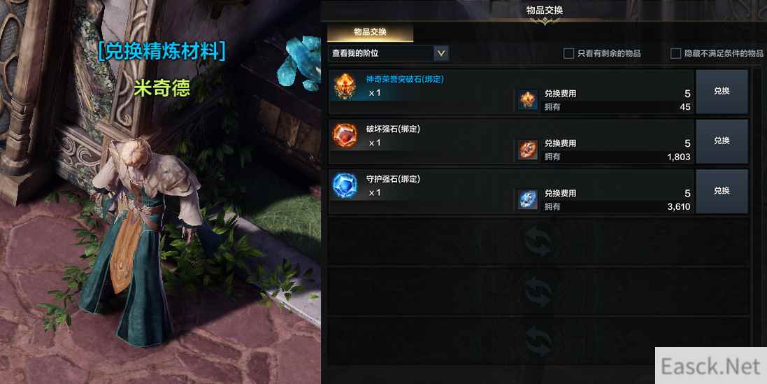命运方舟神奇荣誉突破石是新版本新增的突破石,可以用来升级新装备,而且可以使用旧材料兑换,那么命运方舟神奇荣誉突破石在哪兑换?下面就给大家带来命运方舟神奇荣誉突破石兑换地点。 命运方舟神奇荣誉突破石兑换地点在各大主城开放[兑换精炼材料]系统角色,玩家可以在此处将伟大荣誉突破石、破坏石结晶、守护石结晶,兑换为古代阶段精炼所需的神奇荣誉突破石、破坏强石、守护强石。 可以选择是否只使用绑定材料进行兑换。 兑换后获得的材料为角色绑定。