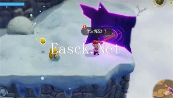 2、进入裂缝后往前方直走把冰块拉开找到【伙伴1】;