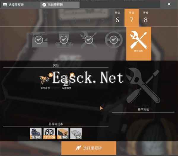 3. 在枢纽终端里程碑等级7选择悬停背包,然后点击选择里程碑,之后放入这些材料点击发射太空舱即可。