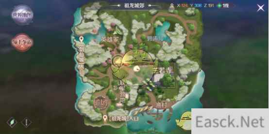 鬼母在祖龙城郊外,坐标:130,306,194,可能玩家看到这个坐标还是不好找,现在告诉大家一个简单的方法,只要来到上图所在这个位置,等鬼母出现就能够看到。