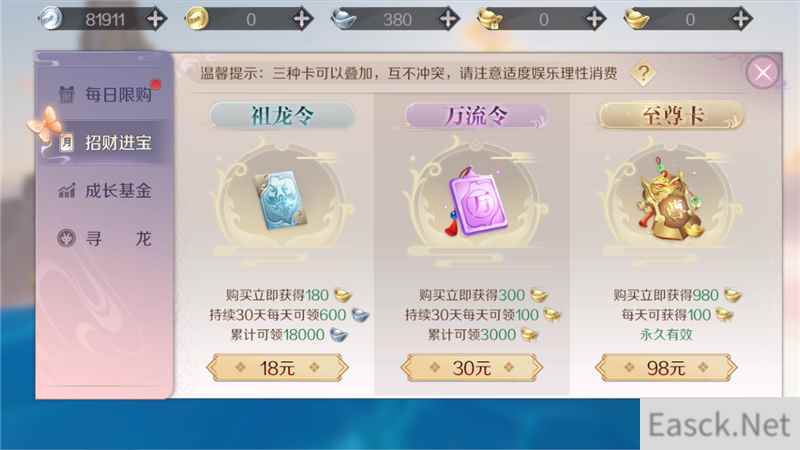 在完美世界手游里小资要比零充玩的稍微轻松一些,因为每日的资源方面都会多很多,例如游戏里的招财进宝和成长基金。作用就非常大,接下来就说下小资三卡后每天最佳的玩法。