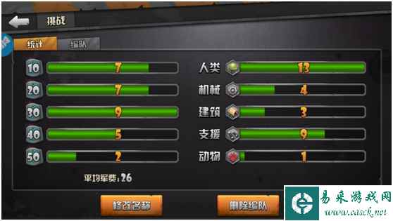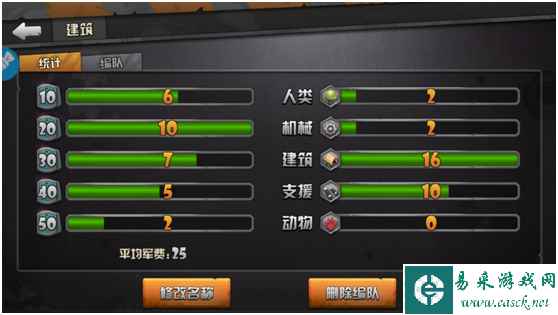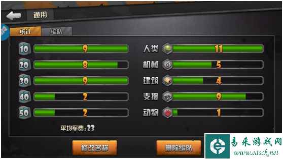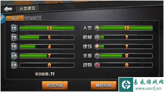 【通用卡组】 卡组的平均费用:个人经过几百场战斗总结的是卡组平均费用控制在23最好。战斗中10秒获得一张牌,每秒获得2.5军费,貌似是卡组平均费用25最好啊,但是你别忽略一点,你上来就有4张牌,而只有25费,如果卡组均费不低于25的话就会卡手,太低也不好,太低卡牌的强度会偏低。 一共30张牌,该如何组?我个人的心得是,近战的肉盾最好带七八张,少了的话有的时候抽不到很尴尬。肉盾这几张带什么有讲究,要带至少3张能抗对面高伤害AOE的肉盾,比如地堡,火焰喷射器,生化重甲车(加固地堡不建议带),剩下的肉盾最好的是重盾卫兵,土著战士也不错除了肉还有点输出,铁拳我觉得如果想带最多1张,重装步兵可带0-2张,主要还是看你有没有其他肉盾卡,像我这卡组肉盾足够我就没带重装步兵。 肉盾组好之后再考虑支援技能,支援技能不要太多,控制在6-8张就好,微型导弹最好带上1张,能解对面的狙击手,手雷投手,关键的时候很有用。燃烧弹和高爆炸弹一共至少要4张,这里说一点,燃烧弹科技升级的性价比很高,你们自己算一算就知道。空袭我没带,是因为在高端局空袭作用不大,对面很少会给你放空袭的机会。核弹我也没带,不是高端局核弹不厉害,而是我没有啊,我要是有你看我带不带。 支援组好之后就是输出了,输出的话考虑几点,单体输出和AOE输出都要有,再考虑射程,中距离的,远距离的,超远距离的都要有,这样你在战场上单位能分的开,避免对面一个炸弹把你的单位全部带走。单体输出比较好的是散弹枪兵、狙击手、劲射装甲车、土著猎人,别问我辐射兵为啥不好,我只能说辐射兵不是不好而是很难用。AOE输出比较好的是破损坦克、喷火兵、迫击炮、巨炮,主战坦克也挺好,但是费用太高,有的时候你会发现你一个卡组里根本带不了那么多50费单位。 好了最后说下橙卡,对于通用卡组,一些橙卡是必带的,如果你有的话。上等兵加里森、犬王道格、伪装大师、屠夫哈格、核弹。 【人类速攻卡组】