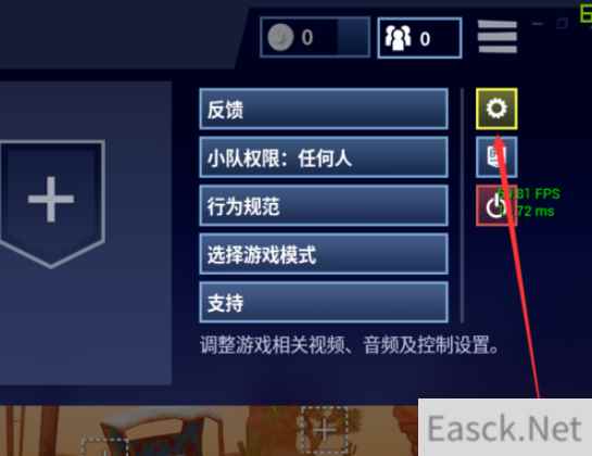 如图所示,这里弹出的游戏设置窗口中,点击右上角位置中的 设置图标,进入设置中心。