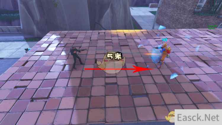 当与敌人相距10m时,衰减伤害出现,打身约80左右伤害!