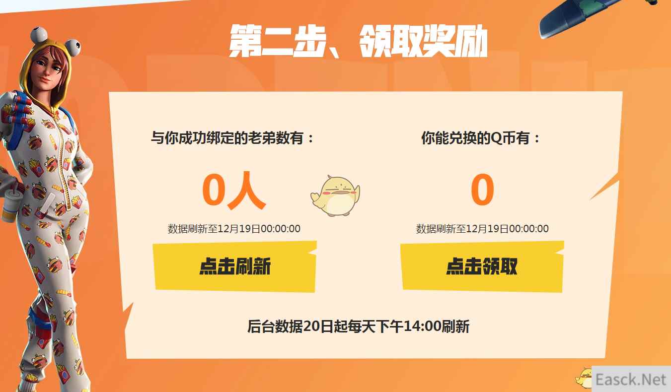 后台数据20日起每天下午14:00刷新。 活动说明 1.活动结束时间为12月24日中午12:00,请在12月26日18:00前领取所有Q币。 2.Q币总量有限,若在活动结束前兑换完毕,将提前结束活动。 3.邀请的老弟必须是活动开始前在堡垒之夜未创角的新玩家。 4.邀请的老弟在玩家页登录QQ并输入邀请码,即可完成绑定。下载游戏领取英雄季卡,活跃即可助你获得Q币。 5.1名新玩家最多可以为你带来50Q币。 6.12月20日起每天下午14:00数据将会刷新。 还在等什么,赶紧邀请起来。小手一抖,QB到手!觉得OK的点个关注点个赞吧! |