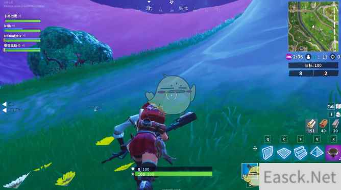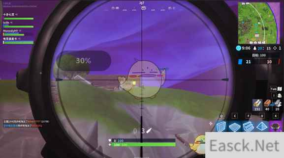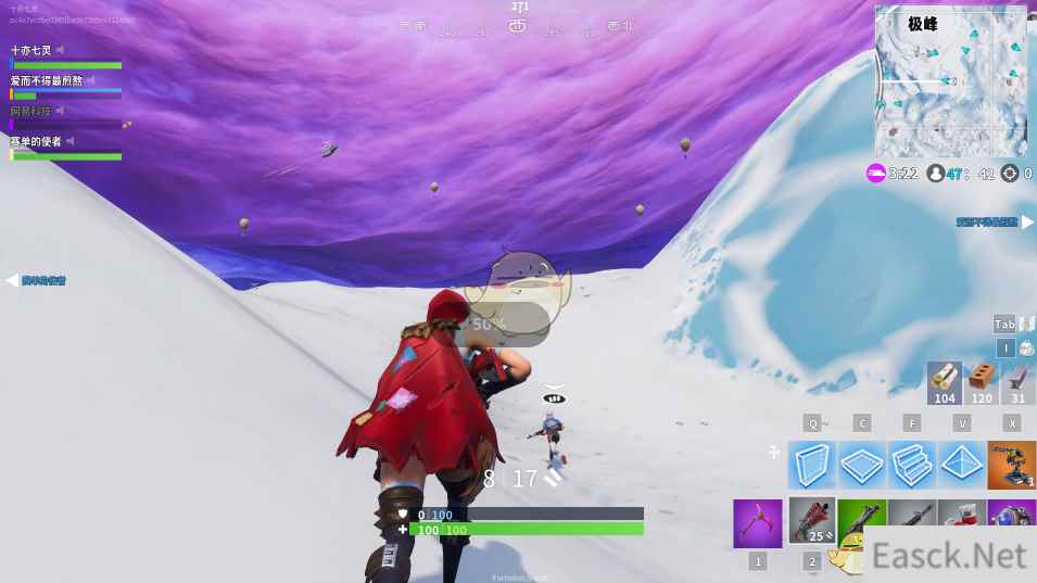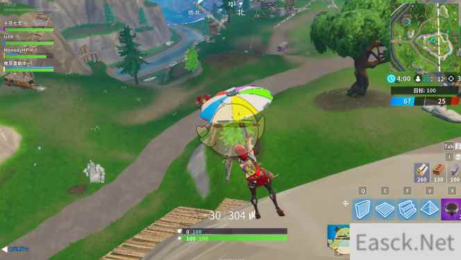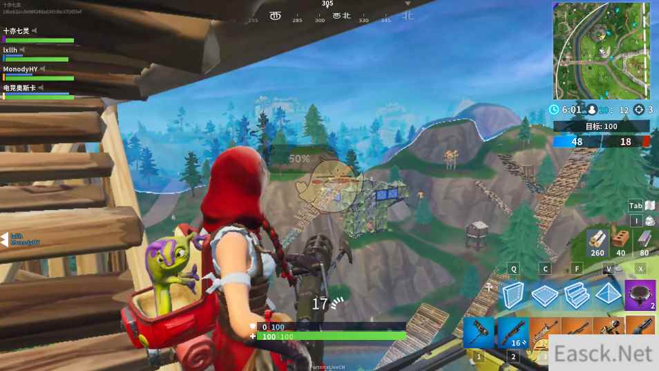 2)若你周围是平地以及斜坡,那么接下来的搭板可以多向地面靠拢,毕竟作为一个锄宗,大地母亲才是锄友们的至爱。如图,锄友们在这种地形战斗可以向上搭木板占据高点,并且在空中搭板时要边射击边向敌人的方向搭板前进,一旦敌人被锄友们击中一次就可以冲过去近距离压制对方。