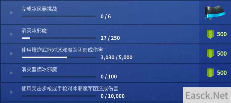 堡垒之夜的冰风暴挑战的特殊奖励只有两个,一个是冰雪套装的雪橇滑翔伞,一个是新的蓝黑配色枪械皮肤,其余的奖励全部都是500经验,不过由于任务非常容易完成,随意还是推荐大家顺手做掉获得奖励的。