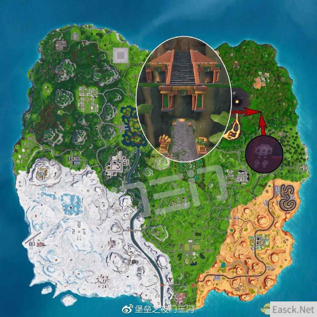 《堡垒之夜》第八赛季第三周隐藏星位置,第三周隐藏任务怎么找,这次的隐藏任务藏的很巧妙,不是对地图很熟悉的人一般都找不到,下面我们一起来看看吧。 通过隐藏壁纸我们可以看出,本周隐藏位于火山口东部野区位置。隐藏在神庙(I4象限)附近 具体可以根据下图找寻找