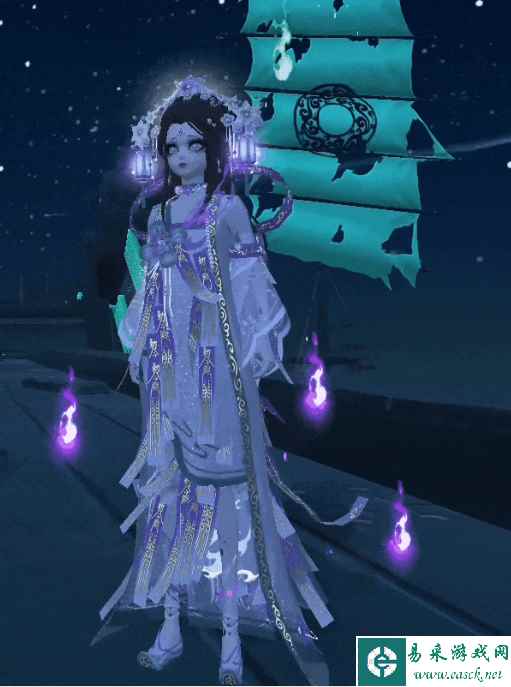 然而一封封家书虽传递着思念 却迟迟未能迎来将军归来的消息 为了寻回将军,妻子化身为幽冥魅傀 在人间寻找爱人的踪迹 这套服饰以紫色和金色为主色调 紫色象征着神秘与哀愁 金色则代表着曾经的辉煌与期盼 头顶复古鱼尾辫 点缀着小花和紫色的幽灯挂饰 神秘而又梦幻 在无尽的等待中 她渐渐迷失了自己 有人说她或许早已被黑暗吞噬