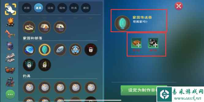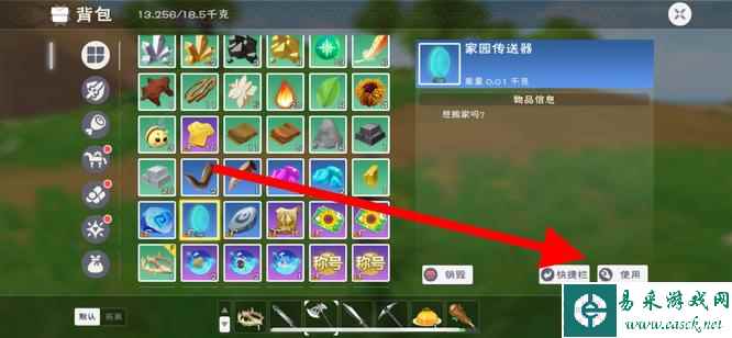 3、制作完成后,可打开背包在这里找到家园传送器,接着点击右下角使用。