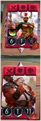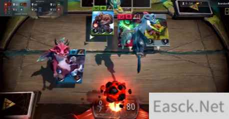 行动阶段中,玩家可以增加己方生物,BUFF己方生物,用法术对敌方生物进行伤害,强化己方防御塔,调整攻击目标,为己方生物调整站位等等。总而言之,行动阶段的存在,就是让你的战斗阶段变得对己方更加有利。 3、战斗阶段 ①战斗机制 Artifact的战斗机制和炉石类似。相互战斗的单位,会受到敌方攻击力数值的伤害,如果这个伤害高于单位目前的血量,则该单位被消灭。在战斗之前,玩家可以清楚看到此次战斗的结果。