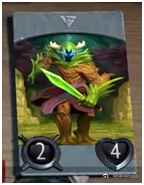 同一个建筑可以获得多个建筑卡能力。 所有建筑卡施放目标都不限于当前兵线。即可以在左路行动阶段,使用左路的法力值为右路防御塔增加能力。 5、生物卡 生物卡为可以从牌组中摸到并在行动阶段部署到场上的随从。