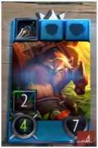 上图中,金色的数字1便是该玩家目前拥有的金币数量。金币的主要作用是在Artifact独有的购物阶段来购买装备或者消耗品。 三.卡组构成 这一块的信息,目前还是不太明确。我们已知的消息是,每一套卡组没有卡牌数量的上限,但每一套卡组中只能加入5张英雄卡,9张装备 卡。英雄卡会配有专属技能,其余的卡位便是一般的魔法卡,建筑卡,生物卡等等。 四.卡牌种类 1、英雄卡 英雄卡是Artifact中最重要的生物。由于Artifact沿用了DOTA2的世界观,所以Artifact中的英雄包括但不限于DOTA2中的英雄,还有DOTA2中的中立生物以及一些全新人物。