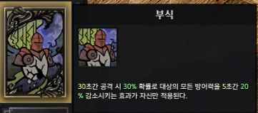 30秒内 攻击时有30%的几率 使对方的防御在5秒内降低20%效果命中后可以明显看到怪物身上有红流下降的视觉效果
