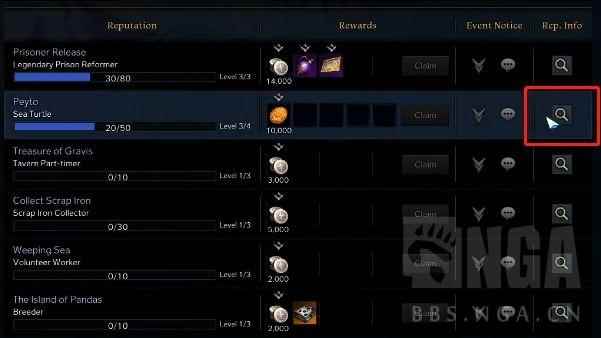 然后点右边的小放大镜就可以查看是什么任务,并且接受。 前期推荐新手做海上乐园Peyto的每日。 那接下来我们来介绍第三种获得强化材料的方法: