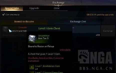 因为T3的材料是可以交易的,而且T3的强化材料特别的贵,一个强化石就要几百金。 T3材料每兑换一次,所需要的材料数量都会递增,所以肯定是换不完的。 大家量力而行,挑贵的材料轮着兑就行。 这里另外给大家说一下刷混沌地牢的小技巧(适用于每天刷完前两次之后)。