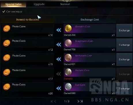 T2的我建议大家就不要买了,直接买T3的,即使装等没到T3,也可以每周开船到Punika购买。 可能又有小伙伴们要问了:海盗币不够怎么办?
