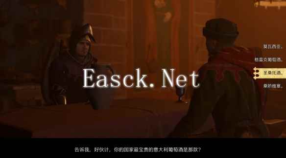 在天国拯救2游戏中,玩家在任务中进行的选项都有可能会影响我们的后续的游戏结局,很多玩家还不知道游戏中的酒后吐真言应该如何选择,下面小编就为大家带来天国拯救2酒后吐真言选择介绍,感兴趣的玩家可以来了解一下。 天国拯救2酒后吐真言选择说明 1.我们与酒店老板哈维尔交谈的时候选择国家,国家可以任意选择。 2.德意志:斯坦伯格,意大利:圣桑托酒,法国:教皇之酒。