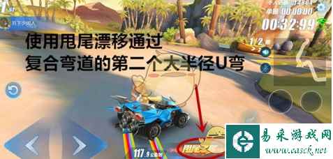 车手们可能以为面对复合型弯道,只要集中精力连续漂移两次就能成功通过。其实这样更容易撞击内弯,因为复合型弯道的U型弯道是一个半径非常大的弯道,车手们要连续漂移两次,第二次使用经典漂移根本不能通过。所以最正确的过法是使用经典漂移或断位漂移过第一个L型弯道,紧接着施放一个小喷再使用甩尾漂移过第二个U型弯道。 【难点2.狭窄隧道】