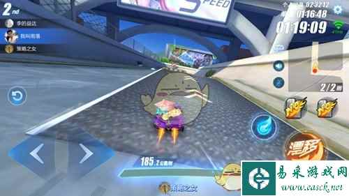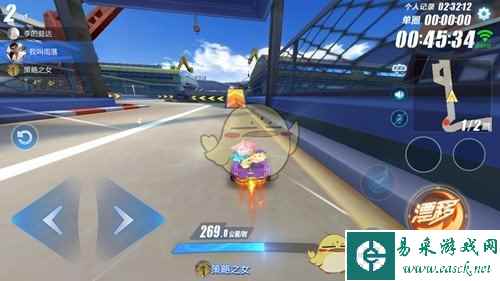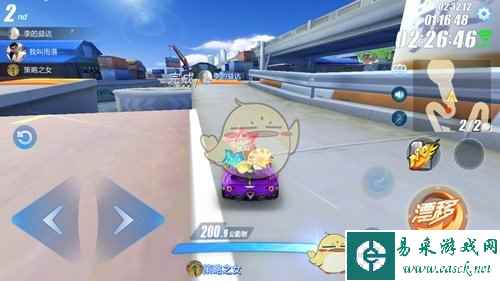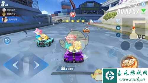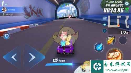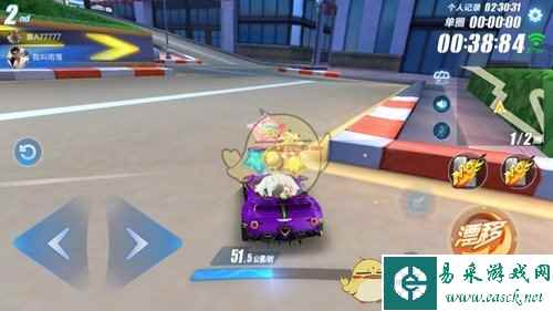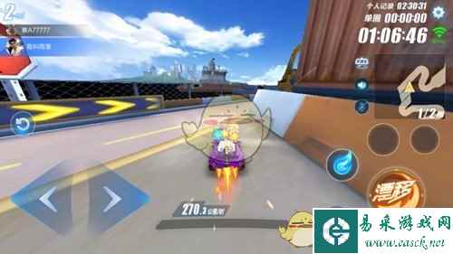 通过高台加速带后,会迎来一个180度转角缺口,这个缺口的横向面积比较大,很容易在漂移过程中撞到前方路沿,这里需要较强的侧漂能力才行。