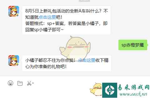 8月5日上新礼包活动的全新A车叫什么?这是QQ飞车手游8月9日微信每日一题的问题,这道题不难哦,玩家可以直接在链接中找到答案,下面一起来看看小编为大家带来今天每日一题的正确答案吧。 小编推荐:QQ飞车每日一题答案汇总 QQ飞车手游8月9日微信每日一题答案
