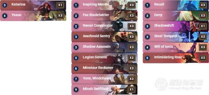 LOR亚索卡组配什么?符文之地有很多英雄卡牌,比如亚索,卡特等等。那么在天梯中,用亚索搭配卡特卡组怎么玩?下面就为带来LOR符文之地亚索套卡组玩法介绍。 LOR亚索卡组 主要使用黑默丁格打上大师后,正在尝试各种套牌。这是他的亚索套,挂1张卡特琳娜。 CEBACAIDFYEACAQCBAFQ6GRMGE4QEAQBAIXDQAYBAMFCINQCAEAQGKQCAEBCCJY