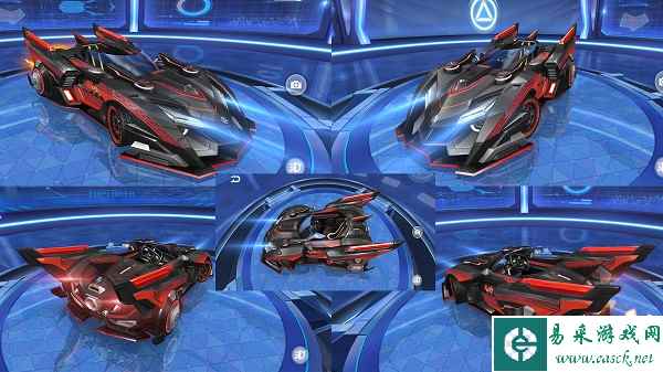 赛车外观展示 B车黔灵主色调为深夜黑,搭配上深红色条纹,气势肃起,锐角式的车型,特殊碳原子车身构架,搭配升级版GZ-71强劲引擎,能有效将外界热能转换为动能。驾驶着它披荆斩棘,一路向黔。