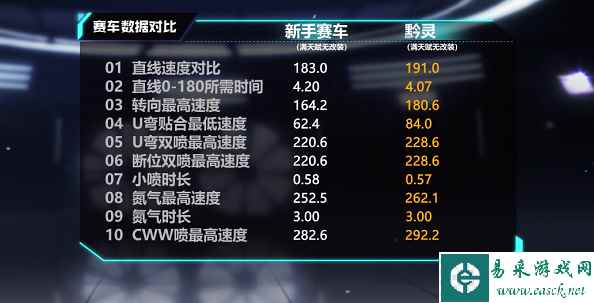 特性分析 特性:漂移更灵活且漂移小喷时机提前。 黔灵的特性实用性强,适合在各样激烈的赛事中奔驰,凭借该特性可轻易超越对手,散发出无限‘黔’能。 赛车数据一览