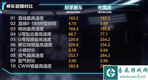 特性分析 特性:平跑转向(非漂移)能力强。每次使用双喷,22%概率6.6秒内基础最高速度+2.2KM/H,小喷动力+6.6%。 布偶虎的特性实用性强,适用与任意类型的赛道之上,实用的赛车特性,更是给驾驶该车的赛车手无数可能性。 赛车数据一览