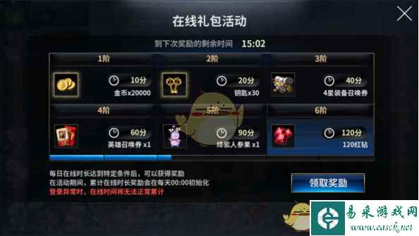 这次介绍的是《十二战纪》的在线礼包,这可以算得上对我们需要持之以恒的玩法,不过相对在线礼装的东西不是特别稀有,想了解就来看看下面的在线礼包介绍吧。 在线礼包 通过主界面→在线礼包可以领取每日在线奖励,每日在线时长达到指定时间时,可以获得奖励。 活动期间累计在线奖励,会在每天的00:00初始化。 登陆异常时,在线时间将无法正常累计。