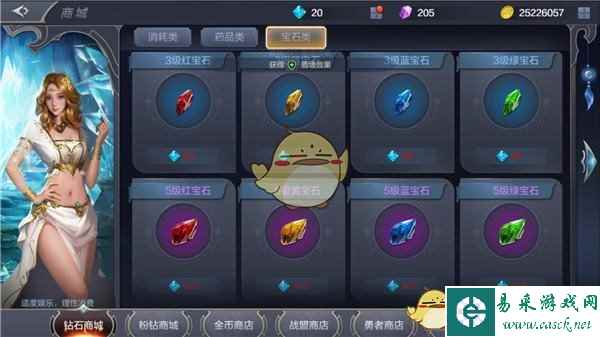 宝石类的话,不建议玩家购买那些低级钻石,因为这些钻石平常的副本和活动中就会掉落很多,玩家可以直接购买五级的宝石,虽然价格比较高,但是属性增强非常可怕,镶嵌在武器上可以带来非常大的加成,也节省了玩家自己合成的时间。