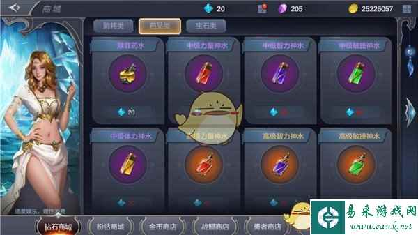 神鹰火种 玩家想要升级翅膀需要大量的洛克之羽和神鹰火种,尤其是翅膀到了后期,每一次升级都非常的困难,打万魔塔的话又打不到太高层,扫荡的话洛克之羽数量是够了,但是神鹰火种却是少的可怜,如果玩家非常缺神鹰火种的话,可以考虑在钻石商城购买,价格也不算太高,40钻石一颗。 神水 神水购买最好的地方就是钻石商城,因为在这里神水的价格并不高,高级神水才50钻石一瓶,玩家服用了可以在一小时内提高某个专门的属性五百点,配合装备的话可以提高非常可怕的战力,无论是打竞技场还是刷恶魔塔都是非常给力的存在,抢Boss也可以增加很大的几率。