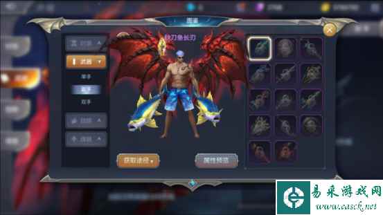 武器部分也有两个栏位,一个是主手武器,另一个则是副手武器,装备时装同样会改变对应位置的外观。但如果是佩戴双手武器的小伙伴就只能佩戴双手的时装了哦。 翅膀