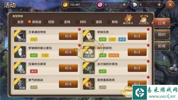 日常活动高效玩法 小伙伴们都知道,日常活动有很多,那是不是可以随便参加,随性而玩之呢?其实并不是的,要想快速获得丰富的奖励就要使用最高效、利益最大化的玩法。小伙伴们都知道,在日常活动中分为次数限制和无限两种类型。所谓的次数限制就是每天只能完成规定的次数,领取完相应的奖励之后便不能再获得奖励了。而无限的活动则不限制次数,小伙伴们可以尽情刷奖励。要想使得效益最大化,就要在完成当天限制次数的任务的基础上再去参加无限制次数的活动。这样一来才不会漏掉那些应该获得的奖励哦!
