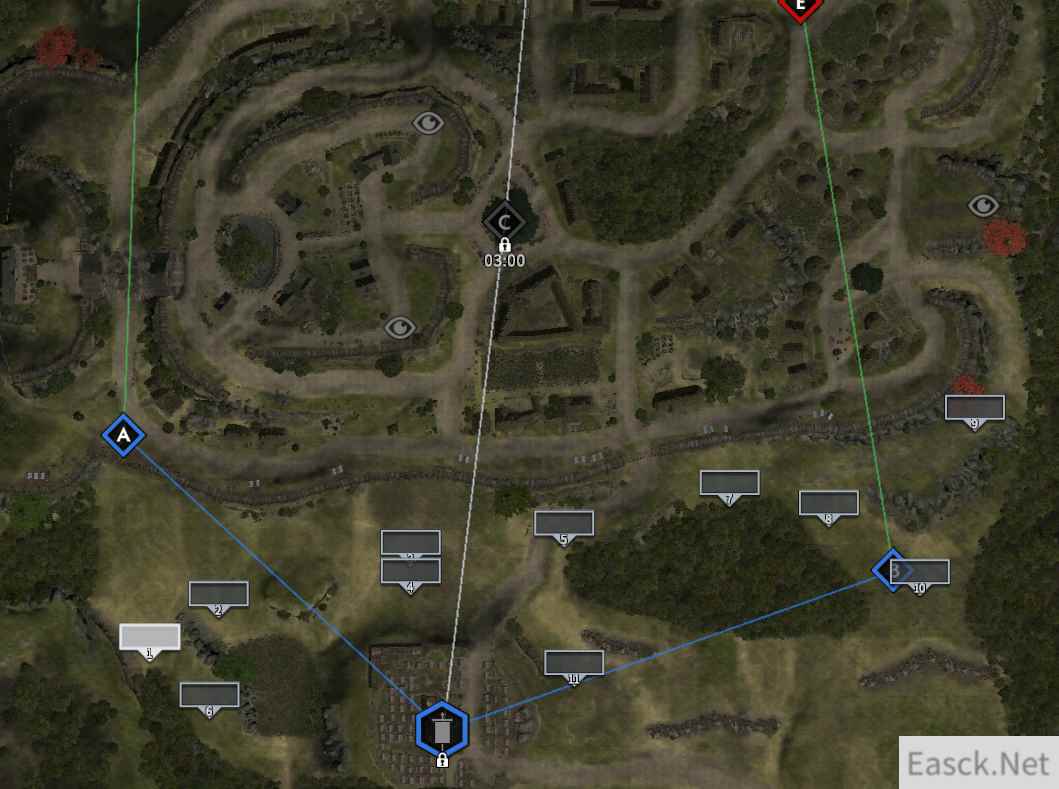从初始点位来看,这张图的三条路线都有较多的部署点,都可以作为重点进攻路线来部署,战术极多, 从视野争夺来分析的话,左路和中路可以说是绑定在一起的,共用两个视野点,而右路距离很远,单独用一个视野点覆盖。在初始部署上,可以侧重左路和中路,也可以从右路打突袭。 对于步兵: 地图遍布的道路让步兵移动速度得到很大的提升,有效加快了步兵在左路和中路的推进节奏;中路高地上地形狭窄建筑物多,而且视野点距离近,必定会发生持久拉锯战,防御型的步兵需要从中路推进,来为视野点的弓兵部队撑住战线,同时给边路突袭部队争取时间。而攻击型的步兵则可以从左路推进,或者从右路到中路之间的树林进行小规模的绕后包抄,打开局面。 对于弓兵: 弓箭手在这张图将会始终围绕在中路视野点作战,视野点和中路大点距离极为接近,小高坡的地形可以在拿下视野点的同时对中路进行支援;不过两个视野点之间较为开放的环境和有道路相连,这让两个视野点之间很容易互相推进攻击,要跟步兵战团做好沟通协调,随时需要有步兵保护。 标枪兵则可以选择中路往右路方向进入树林,绕至侧翼输出,也可以选择从左路跟随步兵推进,左路狭窄的通道能给标枪兵较为良好的输出环境。 对于骑兵: 由于中央高地的地形较为复杂,建筑物多且通道大多都很弯曲,给骑兵冲击带来极大的障碍。不过相对的,道路也给骑兵增加了大量的移动速度,虽然地图较大,但是在图上的移动速度很快,可以非常方便的支援各路。地图右侧森林较多,可以掩护骑兵推进,同时左侧的高坡也可以作为绕后路线。 戈维亚的地形复杂,战术打法非常多变,不能强套公式打法,需要根据战局变化和队友动态来随时改变自己的战略目标,多沟通交流才能取得胜利。 |