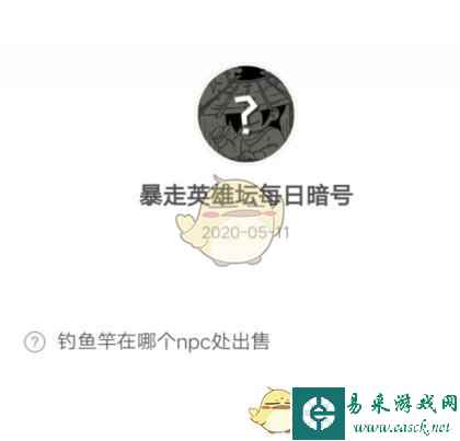 暴走英雄坛5月11日每日暗号答案2020暗号题目:钓鱼竿在哪个npc处出售 暗号答案:杂货商