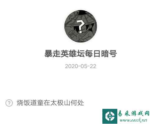 暴走英雄坛5月22日每日暗号答案2020暗号题目:烧饭道童在太极山何处 暗号答案:太极山腰