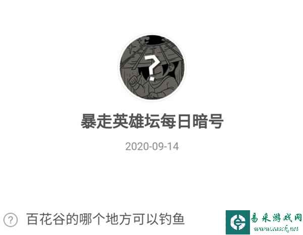 暴走英雄坛9月14日每日暗号答案2020暗号题目:百花谷的哪个地方可以钓鱼 暗号答案:十里画廊