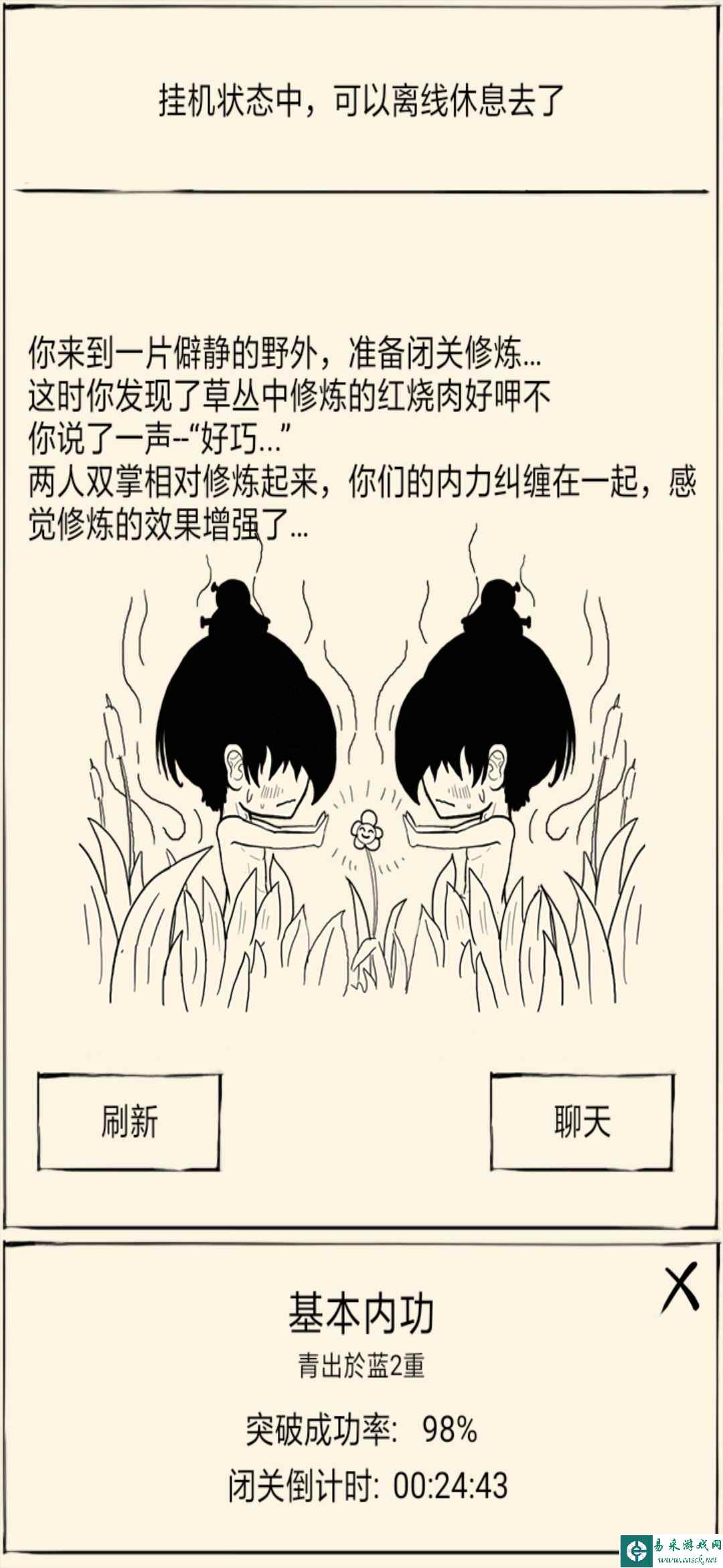 《暴走英雄坛》双修攻略双修: 点击【双修】,可以夫妻或邀请已经与你结拜的好友一起闭关双修,点击【聊天】可以发布闭关消息邀请他人一起闭关。 双修可以缩短一半闭关时间,并且突破一定成功,闭关奇遇触发几率大大增加,建议大侠多多结交其他的侠客,一起双修闭关。