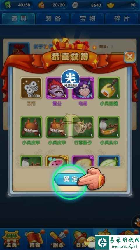 通过了第一关之后我们先領取一下宝箱,会有元宝。对新手用户还是非常照顾的,新手礼包可以说是诚意满满啊。